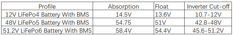 Here’s a table showing various charging profiles of the LiFePO4 battery.